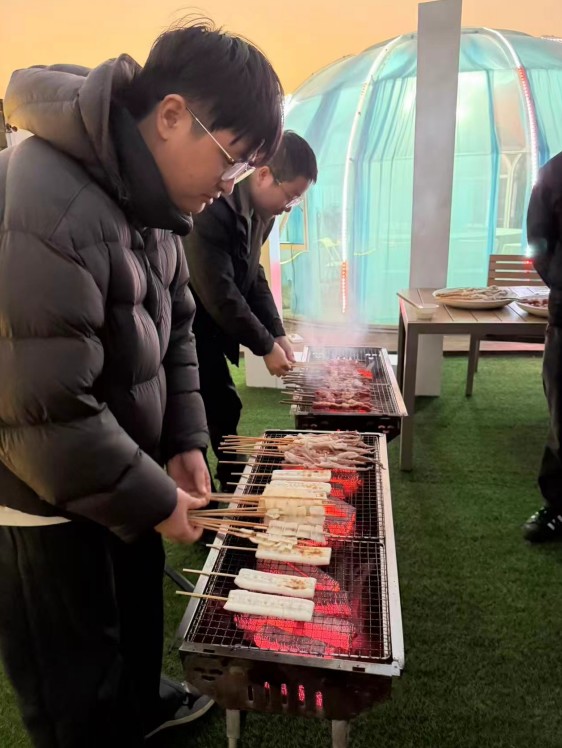وشمل نشاط بناء الفريق أيضًا حفل شواء بالخدمة الذاتية للموظفين. وفي الحفل، عمل الجميع معاً، على تحضير المكونات والطهي، على طاولات مليئة بمختلف المكونات الطازجة والأطباق اللذيذة. جلس الموظفون معًا، واستمتعوا بالشواء بينما كانوا يتحدثون عن العمل والحياة، وكانت الضحكات والفرح تملأ الأجواء. رفع الجميع نظاراتهم وتحدثوا بسعادة، مما يدل تمامًا على جو العمل المتناغم والدافئ لفريق Yongjun Textile.
